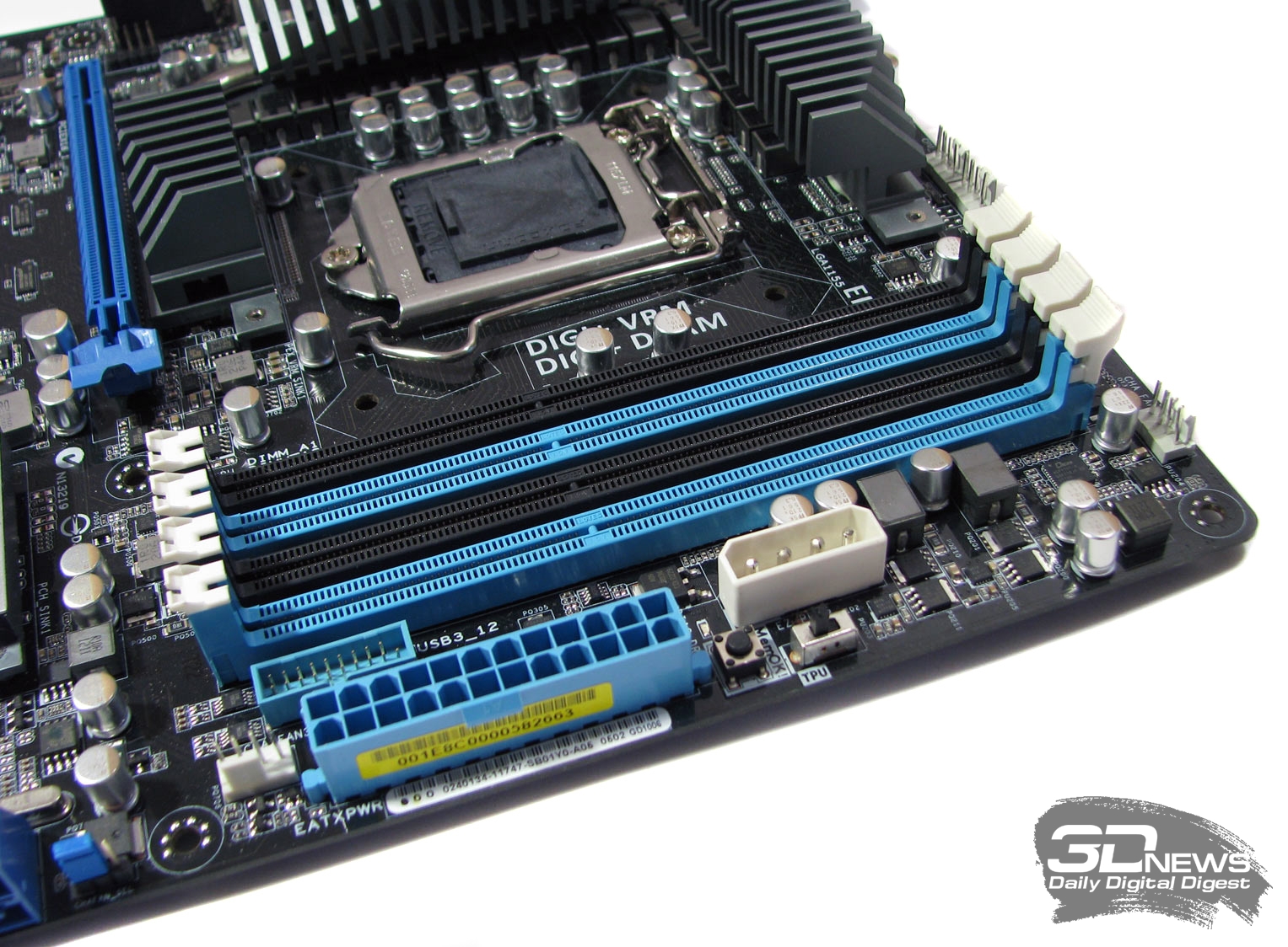 Учтя потенциальную возможность установки четырех мощных видеокарт, разработчики установили на нижнем краю платы дополнительный разъем питания типа Molex: