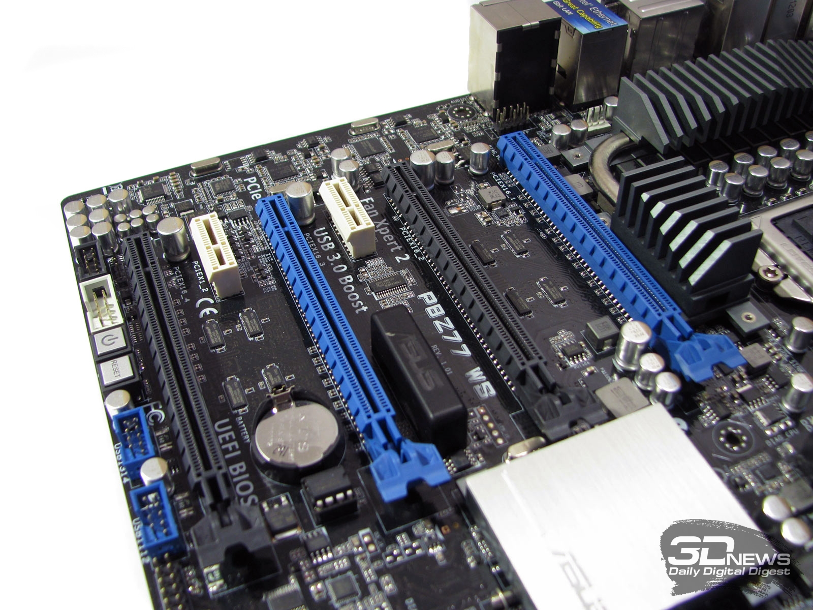 Как мы уже отмечали во вступлении, характерной чертой платы ASUS P8Z77 WS является наличие четырех PEG-слотов, которые, что не менее важно, расположены на максимальном расстоянии друг от друга.