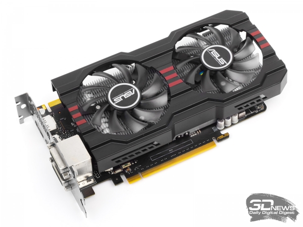 Оверклокерская версия Radeon HD 7790 от ASUS разогнана на 75 МГц по частоте процессора и на 400 МГц — по видеопамяти. В целом GPU производства AMD допускают больший заводской разгон по сравнению с аналогами от NVIDIA. Система охлаждения карты аналогична таковой у вышеописанного ASUS GeForce GTX 650 Ti BOOST DirectCU II OC. Это упрощенный вариант кулера DirectCU II с двумя тепловыми трубками, прижатыми к кристаллу GPU.