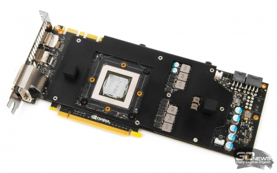 Микросхемы памяти и компоненты системы питания довольствуются охлаждением при помощи тонкой пластины, покрывающей большую часть фронтальной поверхности платы.