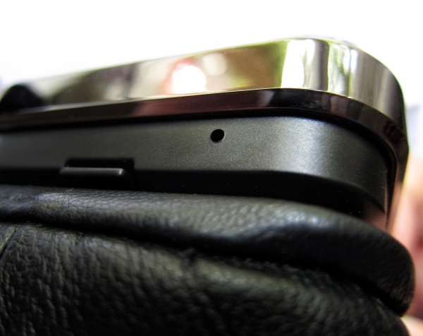 И в самом деле — где? На проводе его нет, из корпуса не выступает. Откроем секрет — он спрятан в одной из чашек наушников (на правой). Опознать его можно по крохотному отверстию в корпусе.