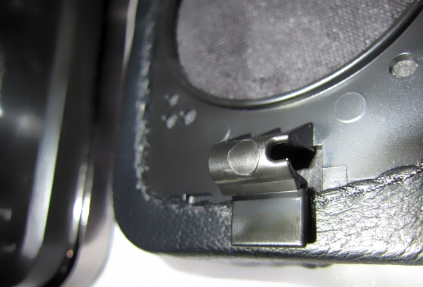 А теперь пришло время рассказать про самую интересную особенность этой гарнитуры. Вероятно, вам уже приходилось сталкиваться с ситуацией, когда вполне современные проводные наушники с микрофоном и пультом ДУ отказываются работать со смартфоном по причине «несовместимости». В модели HA-SR85S эта проблема решена почти на сто процентов. Если вы приобрели эту гарнитуру и обнаружили, что она не совместима с вашим смартфоном — не беда. Аккуратно нажмите «собачку» под левой амбушюрой и снимите накладку.