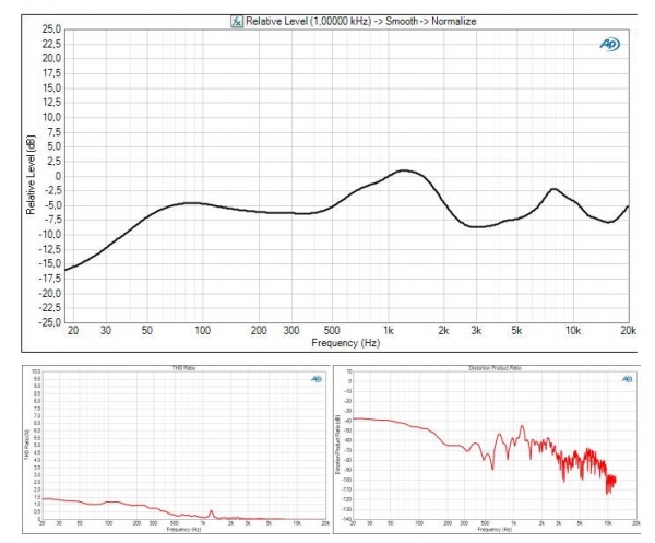 Глядя на такую необычную закрытую конструкцию чашек, да еще такой неординарный дизайн, от данной модели мы подсознательно ожидали «напористого баса», который бы затмевал все прочие достоинства звука. Но наши опасения оказались напрасными, звучит гарнитура лучше ожидаемого. Причем намного лучше. Чтобы нас не упрекнули в субъективности, которая, несомненно, накладывает отпечаток на любую оценку, обратимся к цифрам, любезно предоставленные нашими французскими коллегами с сайта Lesnumeriques.com.